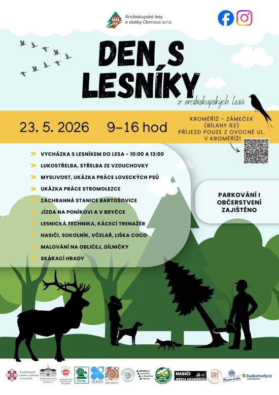 Jedním z nich bude také naše polesí Kroměříž (Bílany 62 – vjezd nutný z ulice Ovocná v Kroměříži), kde pro veřejnost připravujeme celodenní program s názvem Den s lesníky. Návštěvníci se mohou těšit na zábavné aktivity, který přiblíží práci lesníků, myslivců i význam lesa pro naši krajinu.