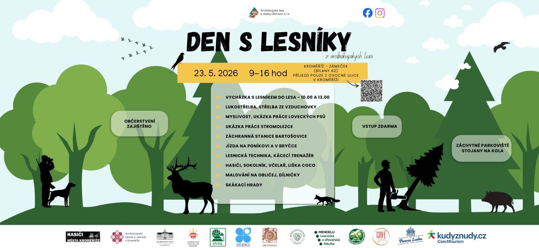 Srdečně Vás zveme na akci pro celou rodinu! Čeká na Vás celodenní program s lesnickou a mysliveckou tématikou, zábavná lesní pedagogika, ukázka lesnické a hasičské techniky, lukostřelba i střelba ze vzduchovky, ukázka loveckých plemen psů, koně, liška Coco, vystoupení sokolníka a mnoho dalšího...