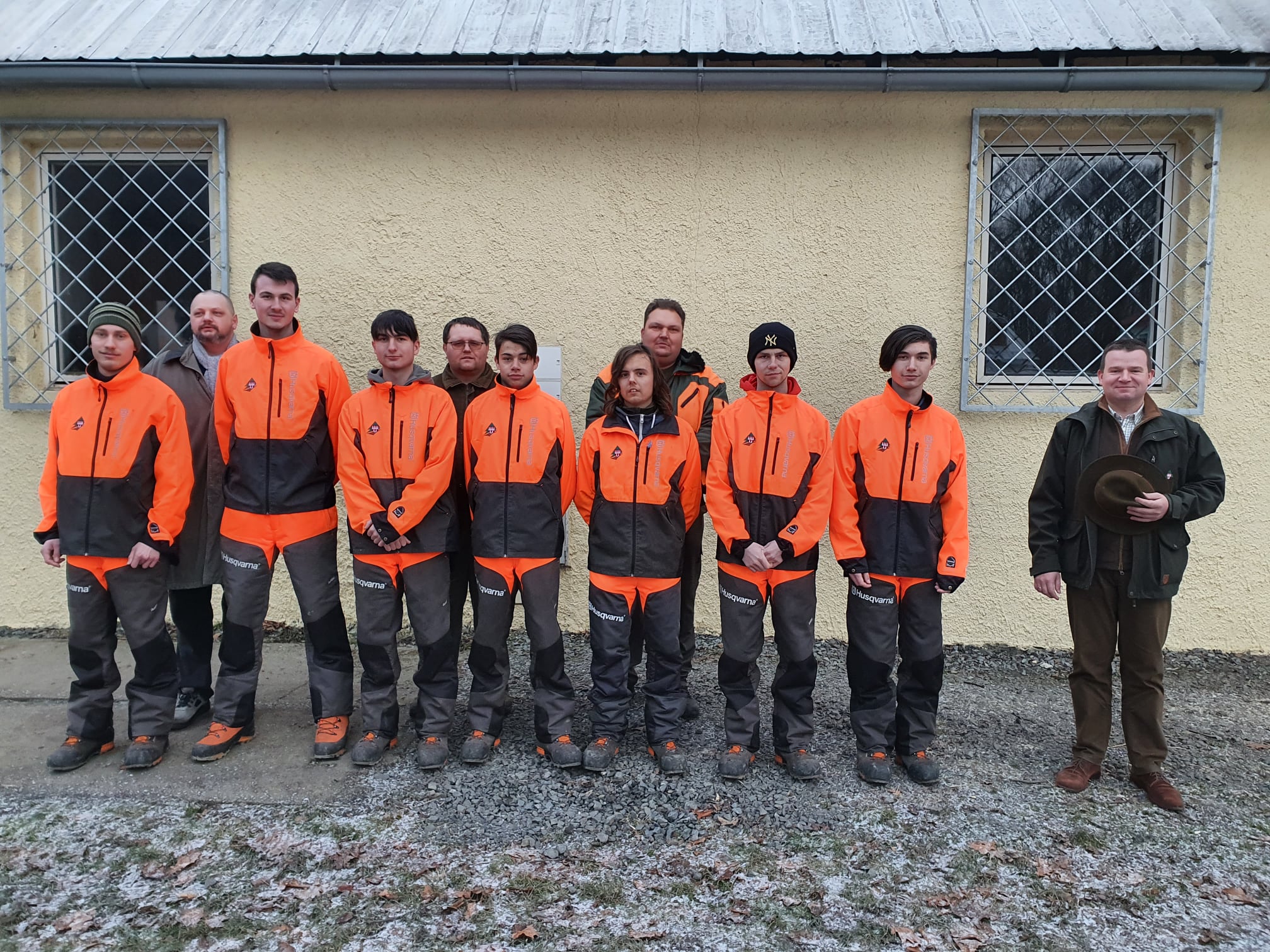 Neprůřezné kalhoty, blůzu, antivibrační rukavice, ochrannou přilbu se štítem a sluchátky a také neprořeznou obuv získali žáci 2. ročníku oboru Lesní mechanizátor ze Střední odborné školy sv. Jana Boska v Kroměříži od společnosti Arcibiskupské lesy a statky Olomouc s.r.o.